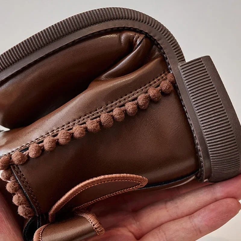 Pompom PU Leather Girls Ankle Boots