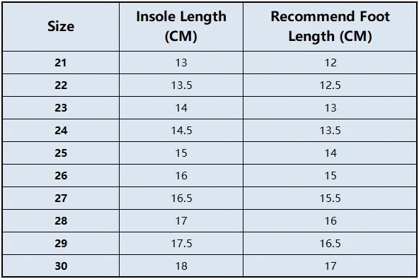 Example: Bare foot length is 15cm, take size 26; Bare Foot length 17cm,take size 30