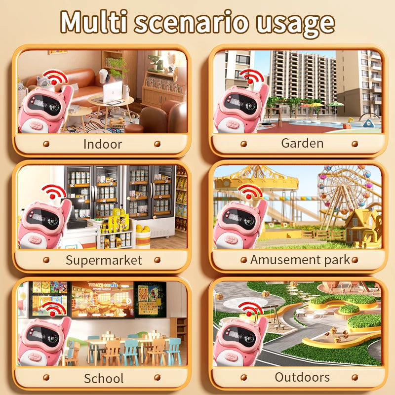 Perfect for school, the garden, the supermarket, amusement parks, and more, our walkie-talkies offer seamless communication and endless fun. Ideal as gifts for holidays like Christmas, birthdays, or the new year, our walkie-talkies are sure to delight.